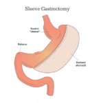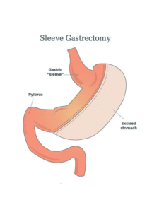 The laparoscopic sleeve gastrectomy, often called the “sleeve,” is performed by removing approximately 80% of the stomach. The remaining stomach is the size and shape of a banana.